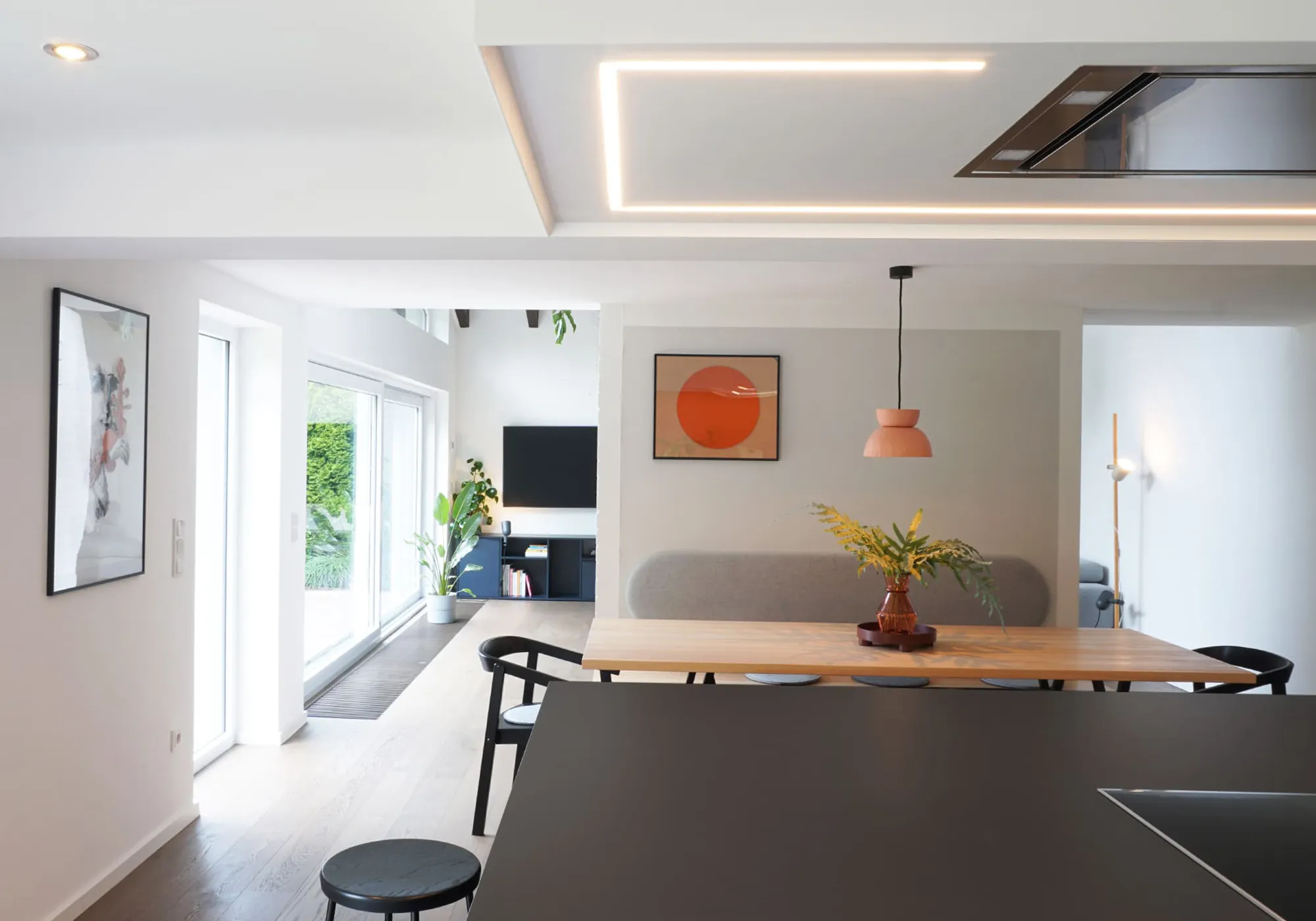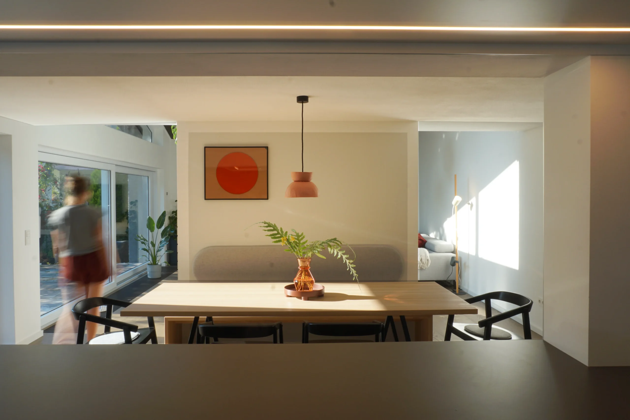 Offenheit und Abgrenzung stehen hier nicht im Widerspruch, sondern ergänzen sich und schaffen eine klare, ruhige Raumabfolge im Flow.